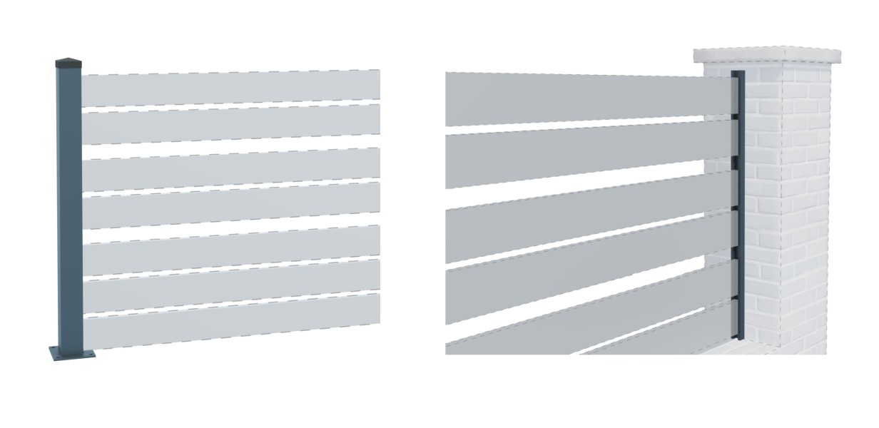 Jeden typ stĺpika je možné použiť ako priebežný (pre líniu plotu), rohový (90° napojenie) a koncový. Nepoužité strany stĺpika prekryte krycou lištou pre čistý vzhľad a ochranu.