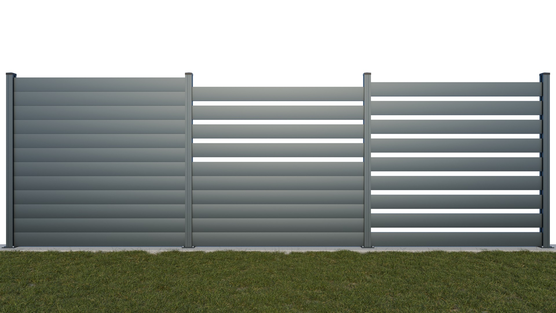 Kombinovať môžete materiály aj farby (antracit, hnedá, sivá). WPC má povrch so štruktúrou dreva, hliník pôsobí čisto a moderne. Bežný prístup: nižšie panely vpredu, vyššie po bokoch a vzadu pre viac súkromia.