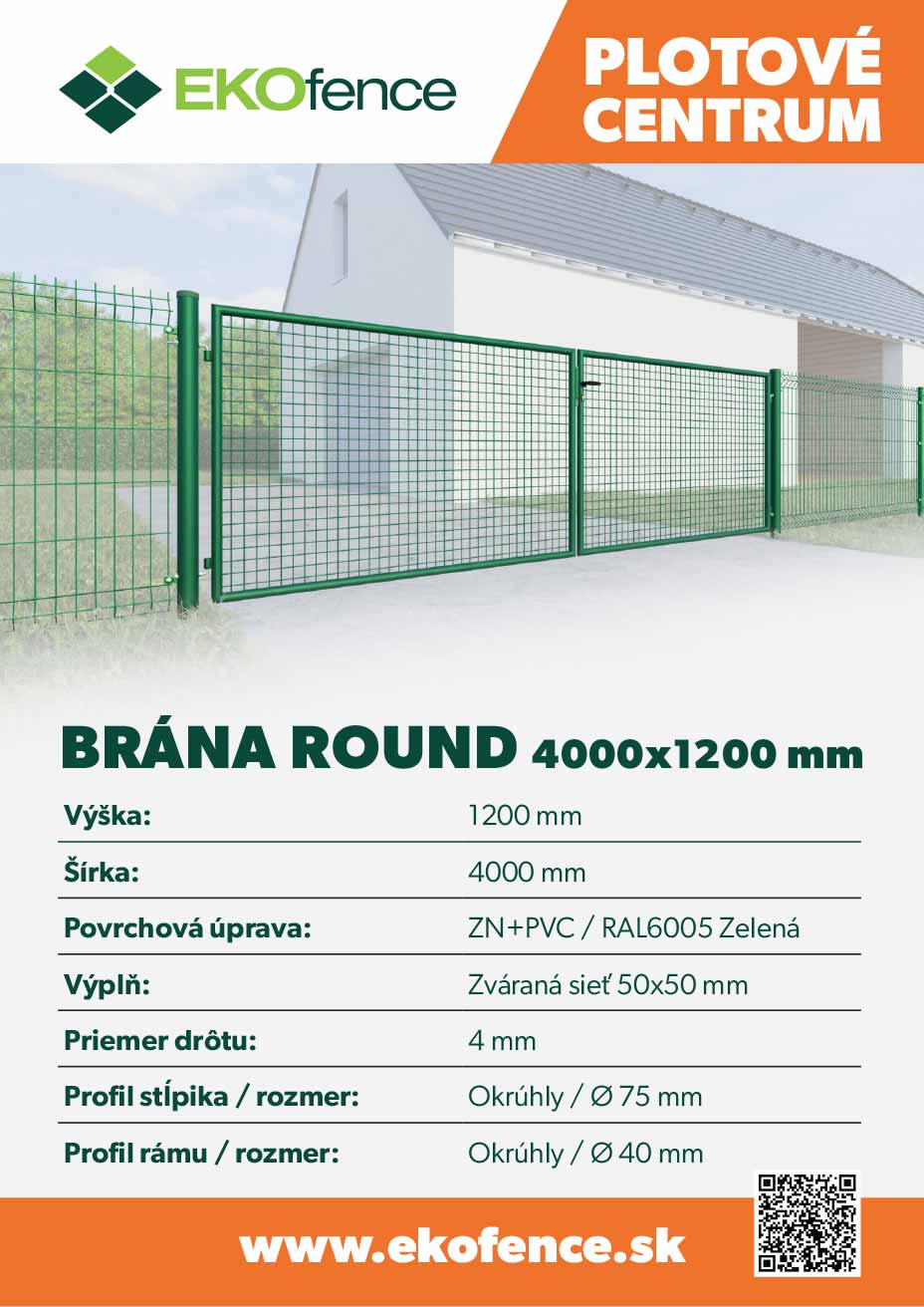 Výplň brány je zváraná sieť. Veľkosť oka 50x50mm. Priemer drôtu D 4mm. Priemer stĺpikov D 75mm. Výška stĺpikov 1700mm. Hrúbka steny stĺpikov 2,0mm.Povrchová úprava: zinok + RAL6005 zelená. Súčasťou balenia je aj zámkova časť a kľučka.