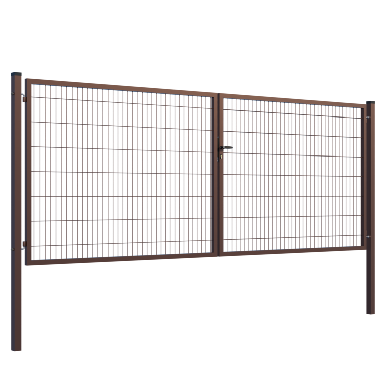 Výplň brány zváraná sieť.Rozmer oka 200x50mm.Priemer drôtu 4mm. Profil stĺpikov 80x80x2mm.Výška stĺpikov 2000mm.Profil rámu 40x40x1,5mm.Povrchová úprava: ZN+RAL8017 hnedá.Súčasťou balenia je zámkova časť, kľučka, zástrč a stredový doraz.