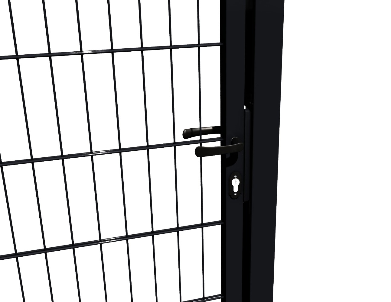 Výplň bránky tvorí zváraný panel 2D 5/4/5 s rozmerom oka 200x50mm. Výška bránky 1500mm. Šírka bránky 1000mm (samostatné krídlo bránky 900mm). Profil rámu 40x40x1,5mm.