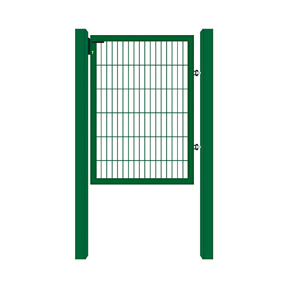 Výplň bránky: zváraná sieť - oko 50x200mm, d5mm. Uzamykanie FAB. Nastaviteľné pánty. Jaklový profil 60x60mm (stĺp), 40x40mm (rám). Povrchová úprava: zinok + PVC RAL 6005 (zelená). Prechodová šírka 970mm.