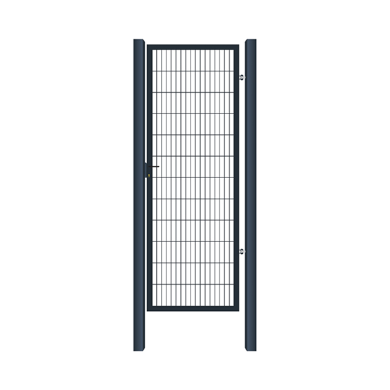Výplň bránky: zváraná sieť - oko 50x200mm, d5mm. Uzamykanie FAB. Nastaviteľné pánty. Jaklový profil 60x60mm (stĺp), 40x40mm (rám). Povrchová úprava: zinok + PVC RAL 7016 (antracit). Prechodová šírka 970mm.