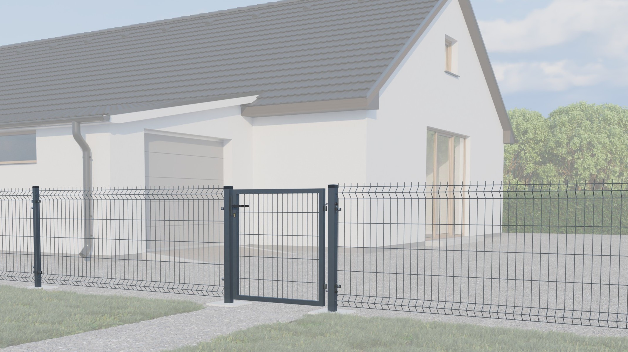 Výplň bránky zváraná sieť. Rozmer oka 200x50mm. Priemer drôtu 4mm. Profil stĺpikov 60x60x2mm.Výška stĺpikov 1500mm.Profil rámu 40x40x1,5mm.Povrchová úprava: zinok + RAL 7016 antracit.