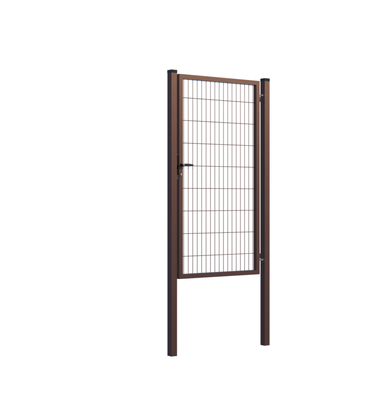 Výplň bránky zváraná sieť. Rozmer oka 200x50mm. Priemer drôtu 4mm. Profil stĺpikov 60x60x2mm.Výška stĺpikov 2300mm.Profil rámu 40x40x1,5mm.Povrchová úprava: zinok + RAL 8017 hnedá.Súčasťou balenia je aj zámkova časť a kľučka.