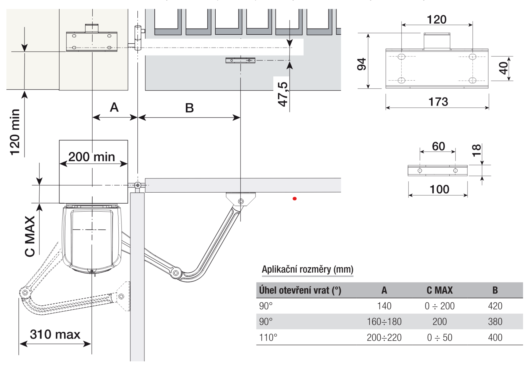 Značka: Came, Max. dĺžka krídla: 2,3m, Hmotnosť krídla (odporúčaná): 100kg, Frekvencia (MHz): 433, Koncový doraz: Koncové dorazy nie sú potrebné, Typ kódu: Multi (fix/rolling), Obsah zostavy: F7000-1x, F7001-1x, AF43S-1x,AT04EV-1x, DIR10-pár, Spomalenie motora: Motor nemá funkciu spomalenia, Napájanie motora: AC 230V, Výkon: 160W, Sila: 180Nm, Rýchlosť: 90° - 15s, Napájanie: AC 230V, Typ: kĺbové, Riadiaca jednotka: ZF1, Stupeň ochrany: IP54, Kondenzátor: 10uF