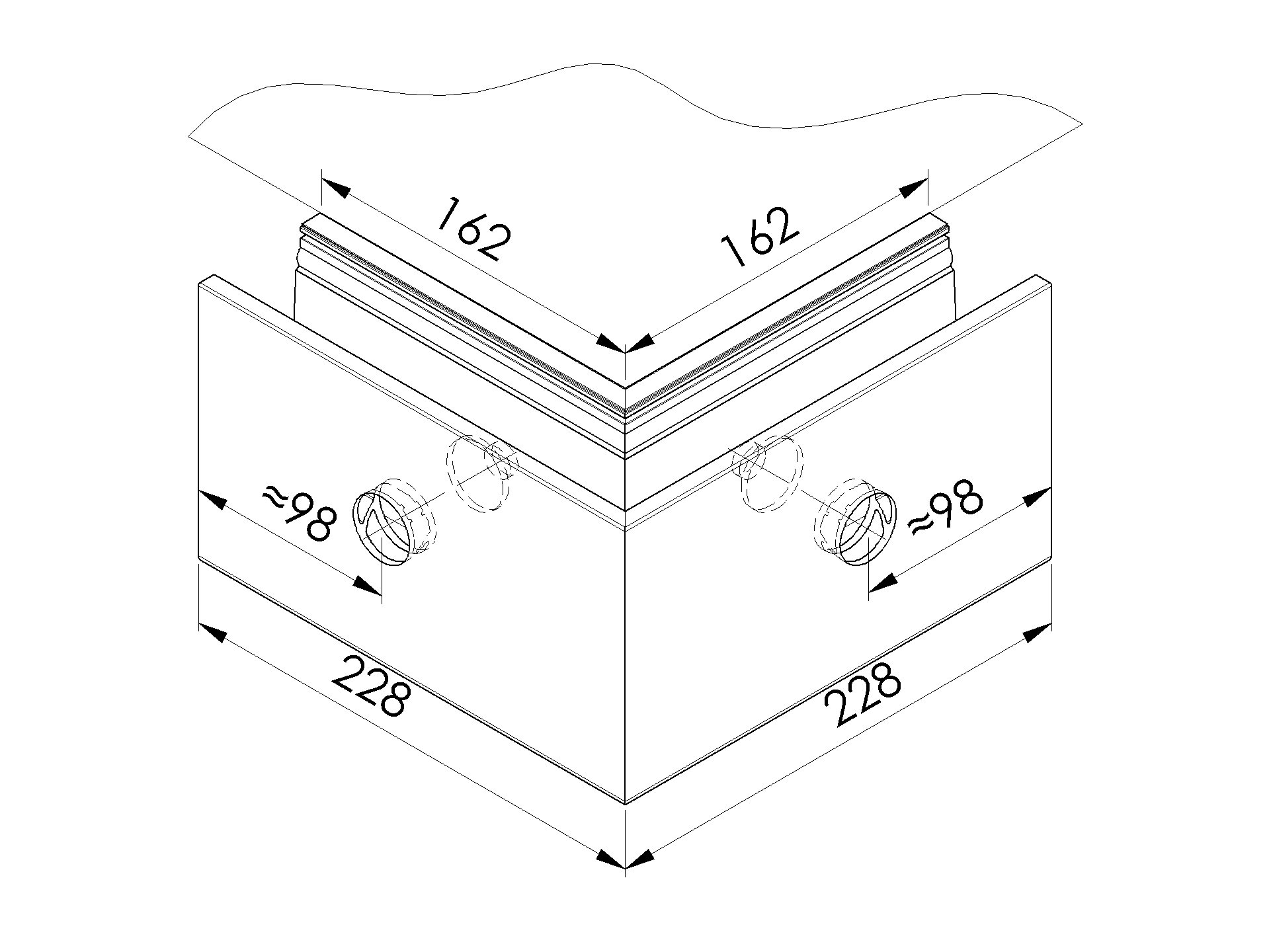 Vonkajší 90° roh pre profil AL/0005-UNO-...S-E