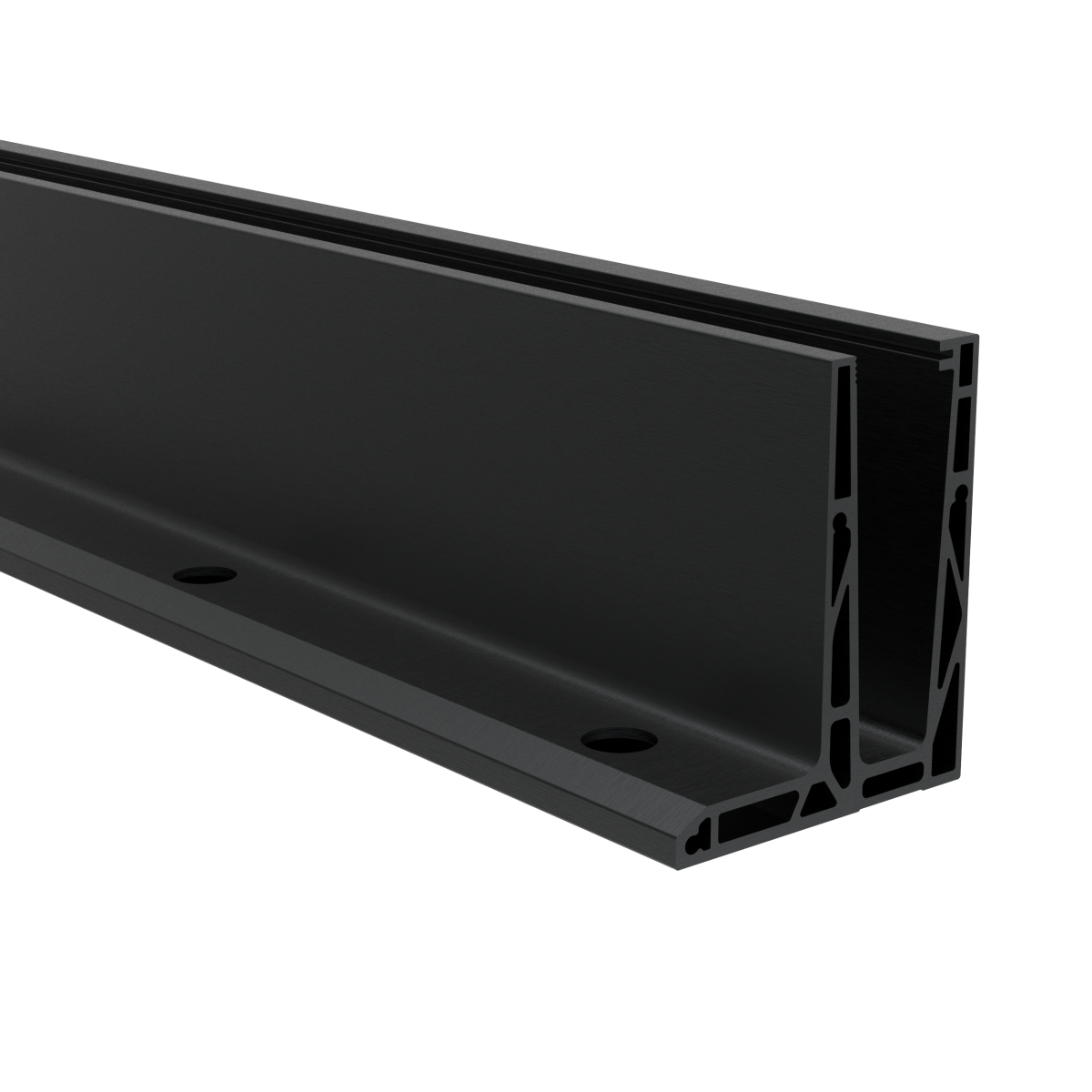 AL kotviaci profil pre sklo, vrchné kotvenie, povrchova úprava práškovým lakovaním, odtieň RAL 9005, bez príslušenstva.