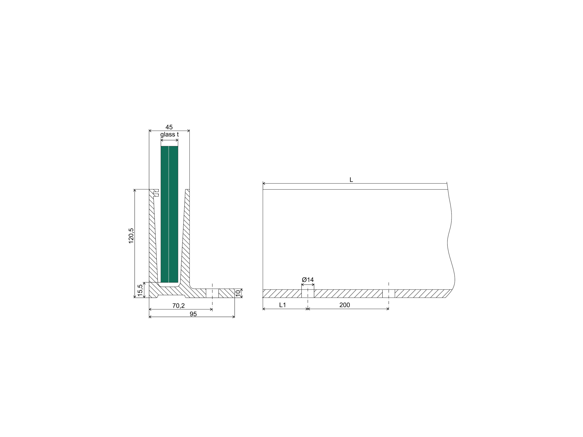 Materiál: Hliník, Povrchová úprava: Satin-ELOX, Glass t: 12,00-21,52, L: 6000, Kotvenie: Zhora, L1: 100, G/h kN: 3