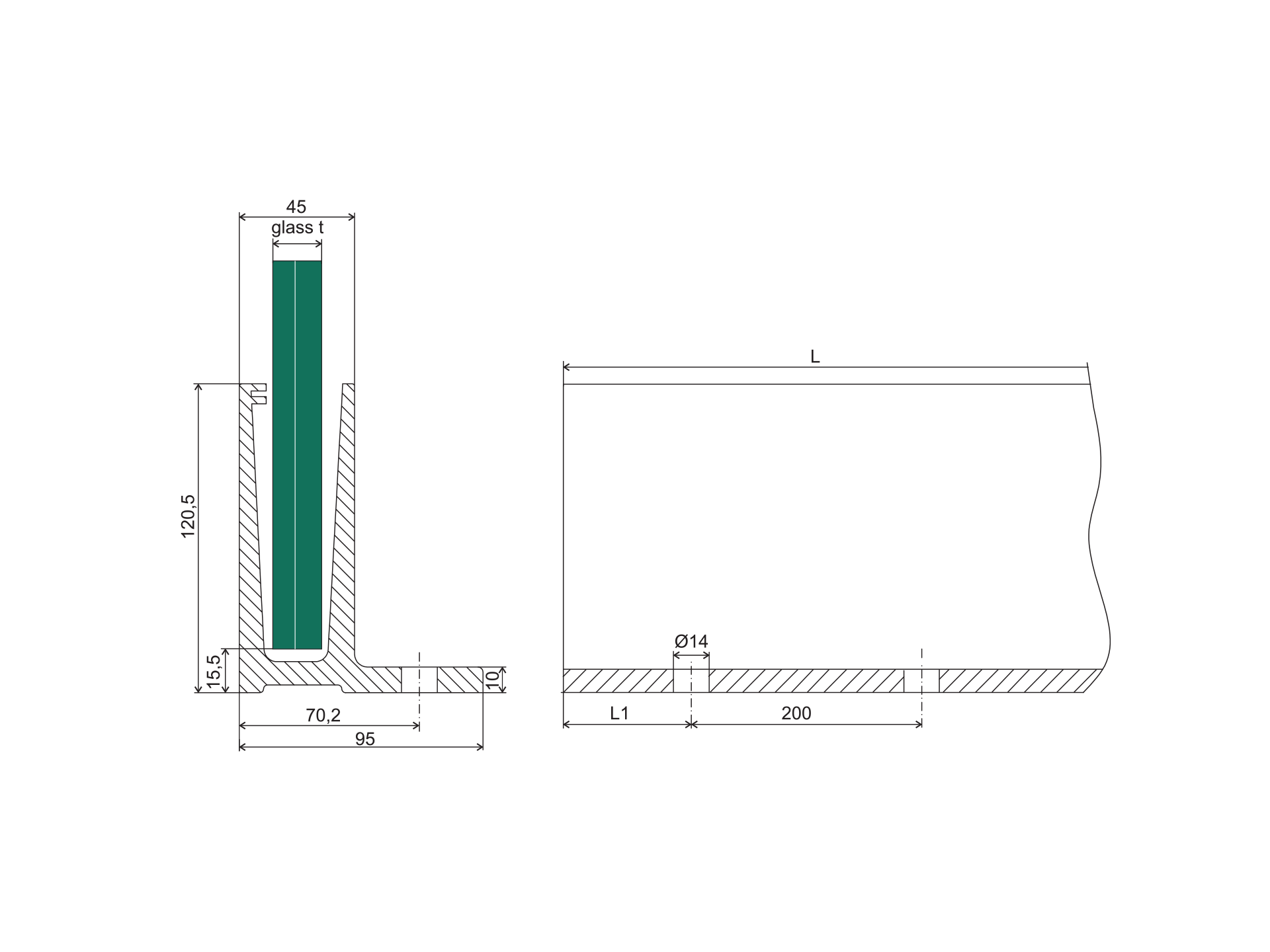 Materiál: Hliník, Povrchová úprava: Satin-ELOX, Glass t: 12,00-21,52, L: 5000, Kotvenie: Zhora, L1: 100, G/h kN: 3