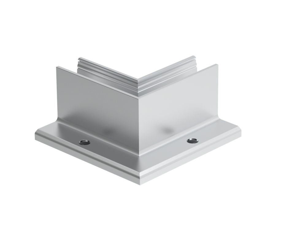 Vnútorný 90° roh pre profil AL/0006-UNO...S-E (ELOX) kotvenie z vrchu do podlahy.