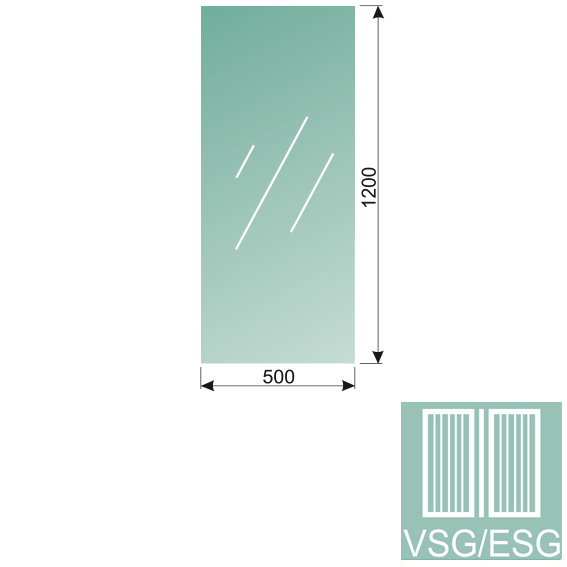 Materiál: Sklo, Povrchová úprava: Kalený, Glass t: 16,76, Vzhľad: Číre, a: 1200, b: 500, Quality: VSG/ESG