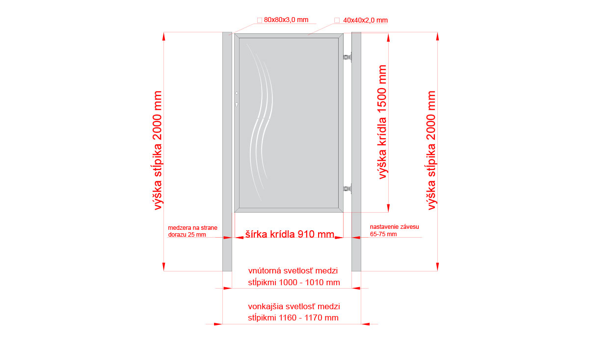 Vnútorná svetlosť medzi stĺpikmi: 1000-1010 mm.