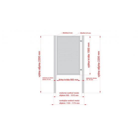 Súčasťou balenia sú stĺpiky, závesy, doraz bránky a štandardná zámkova časť s kľučkou.
