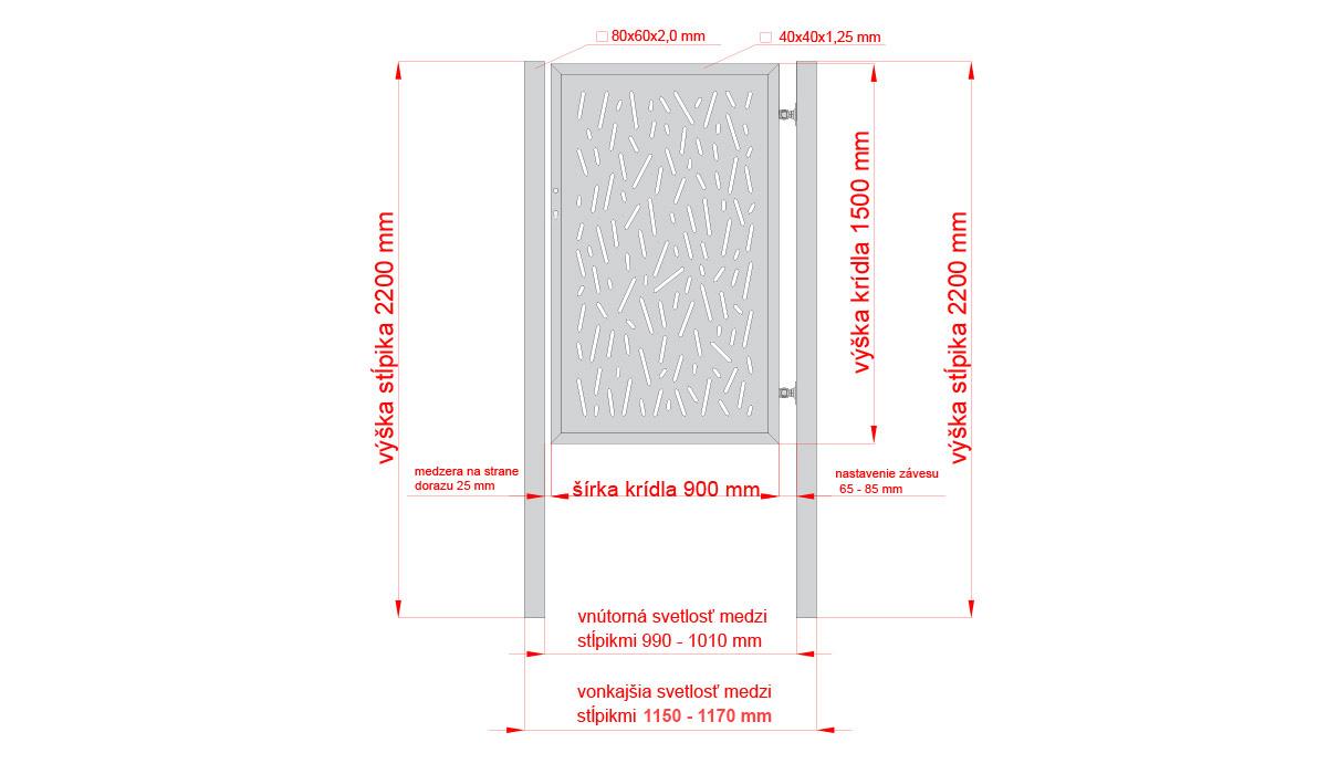 Súčasťou balenia sú stĺpiky, závesy, doraz bránky a štandardná zámkova časť s kľučkou.