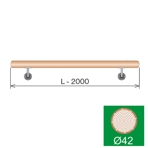 Drevené madlo DUB a nerezové držiaky, L2000mm