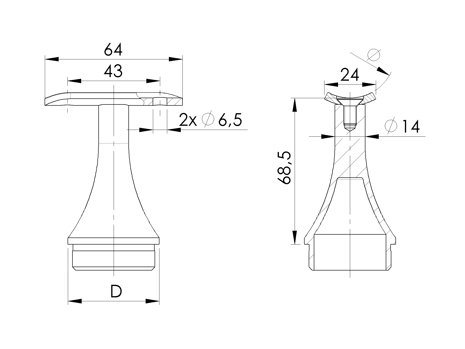 Materiál: Nerez AISI 304, Povrchová úprava: Brus, Kotvenie: Zhora, D: 42,4x2,0, Phi: 42,4