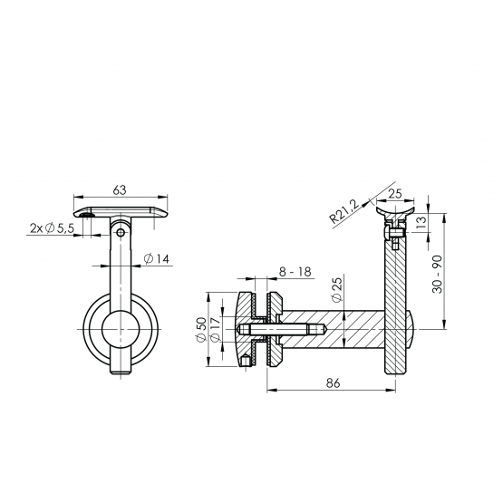 Materiál: Nerez AISI 304, Povrchová úprava: Brus, Madlo: D42,4, Kotvenie: Na sklo, Otvor v skle: 20