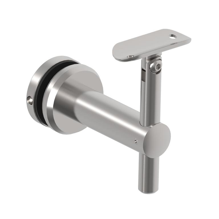 Nerezový držiak madla na sklo s nastaviteľnou výškou a sklonom je špeciálny konštrukčný prvok navrhnutý na upevnenie madla priamo na sklenený panel. Tento typ držiaka je ideálny pre moderné zábradlia a schodiská, kde je požadovaný elegantný a čistý dizajn. Nastaviteľnosť výšky a sklonu umožňuje prispôsobenie madla podľa individuálnych potrieb a architektonických požiadaviek. Pre montáž je potrebný otvor v skle.