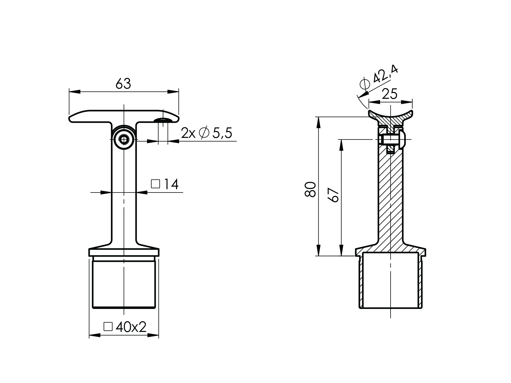 Materiál: Nerez AISI 304, Povrchová úprava: Brus, Stĺpik: 40x40x2, Madlo: D42,4