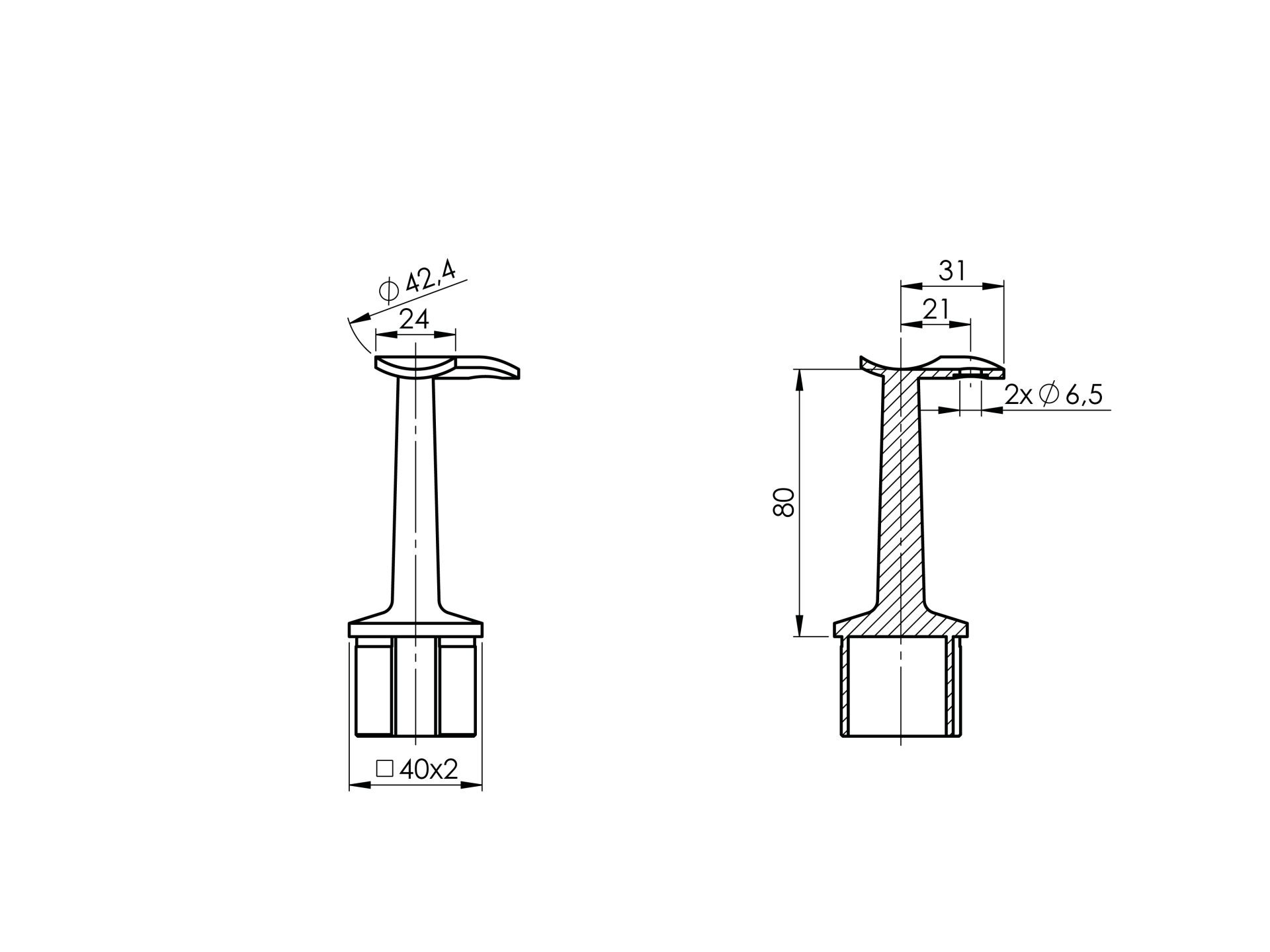 Materiál: Nerez AISI 304, Povrchová úprava: Brus, Stĺpik: 40x40x2, Madlo: D42,4