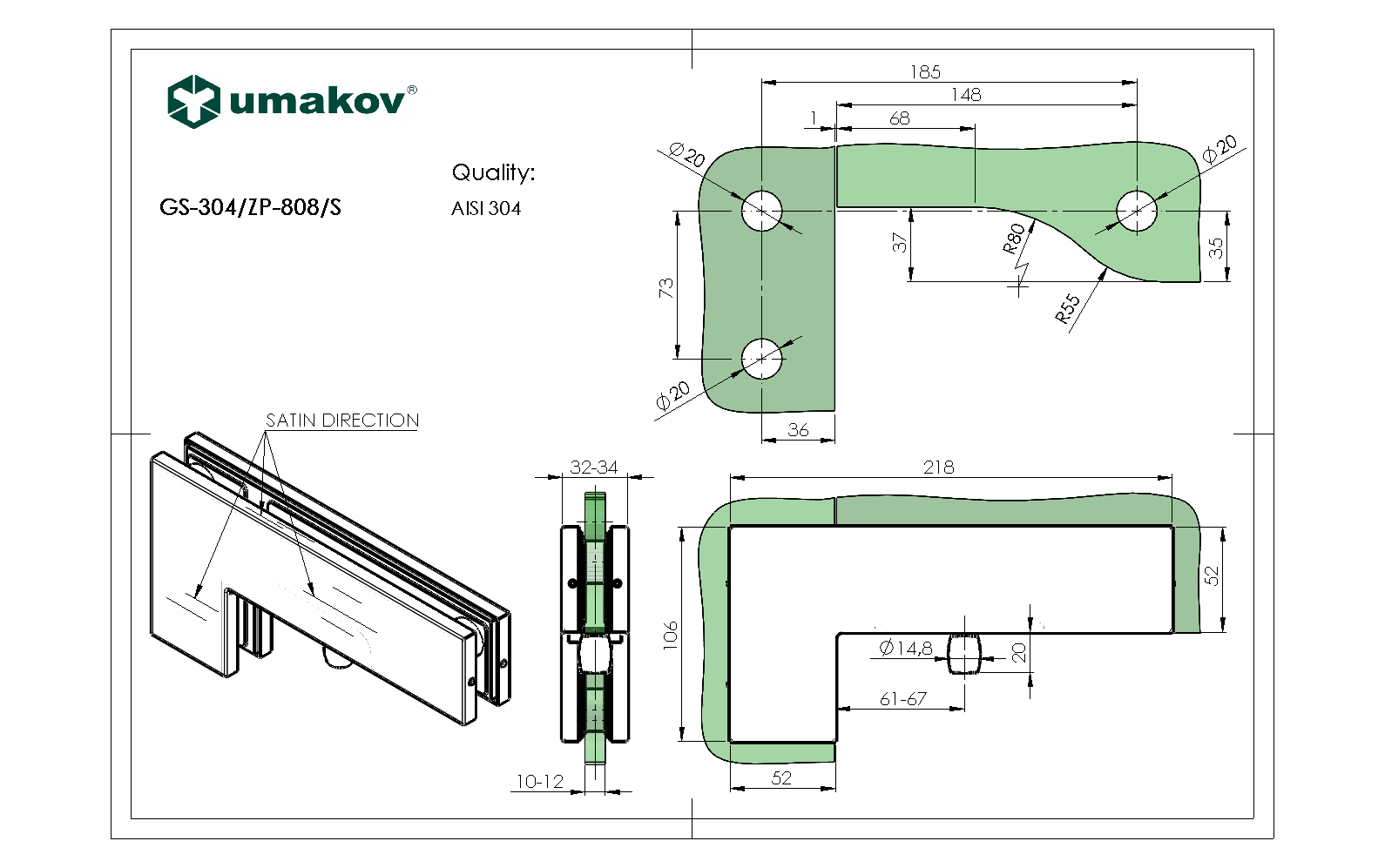 Materiál: Nerez AISI 304, Povrchová úprava: Brus, Glass t: 10-12, Otvor v skle: Áno