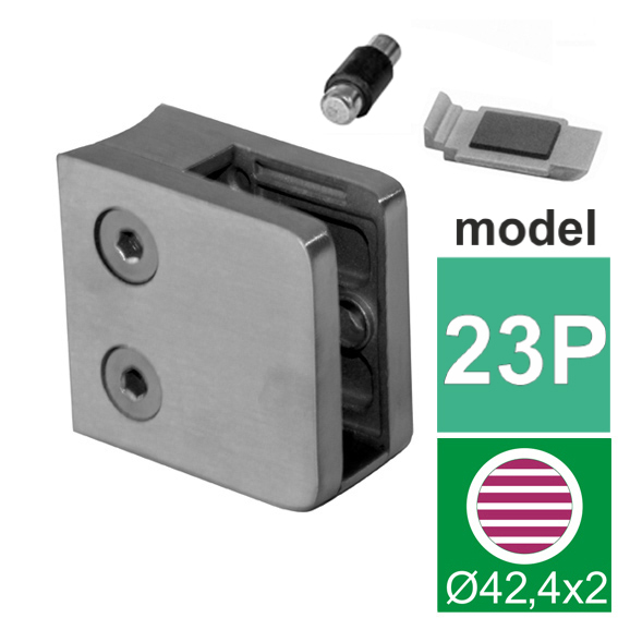 Držiak sklenenej (plechovej, tabuľovej) výplne je konštrukčný prvok používaný na upevnenie a stabilizáciu sklenenej alebo plechovej výplne v rôznych konštrukciách, ako sú zábradlia, balkóny alebo schodiská. Tento držiak zaisťuje pevné a bezpečné prichytenie výplne, čím zvyšuje celkovú stabilitu a bezpečnosť konštrukcie. Sú súčasťou moderných architektonických riešení, ktoré kombinujú funkčnosť, bezpečnosť a estetický vzhľad. Pri výbere držiaka je dôležité zvážiť jeho materiál, dizajn, funkčnosť a kompatibilitu s konkrétnou výplňou a celkovou konštrukciou. Držanie vyplne - poistenie voči vypadnutiu je dosiahnuté pomocou zverného spoja (doporučené použitie pri vrchnom kotveni) alebo zverny spoj + kolik (doporučené použitie pre bočne kotvenie) alebo zverny spoj + bezpečnostná platnicka (doporucene pouzitie pre bocne kotvenie). Držiak neobsahuje tesnenie (nutnost dokupit 2ks tesneni podla hrubky skla) a krytky pre skrutky.