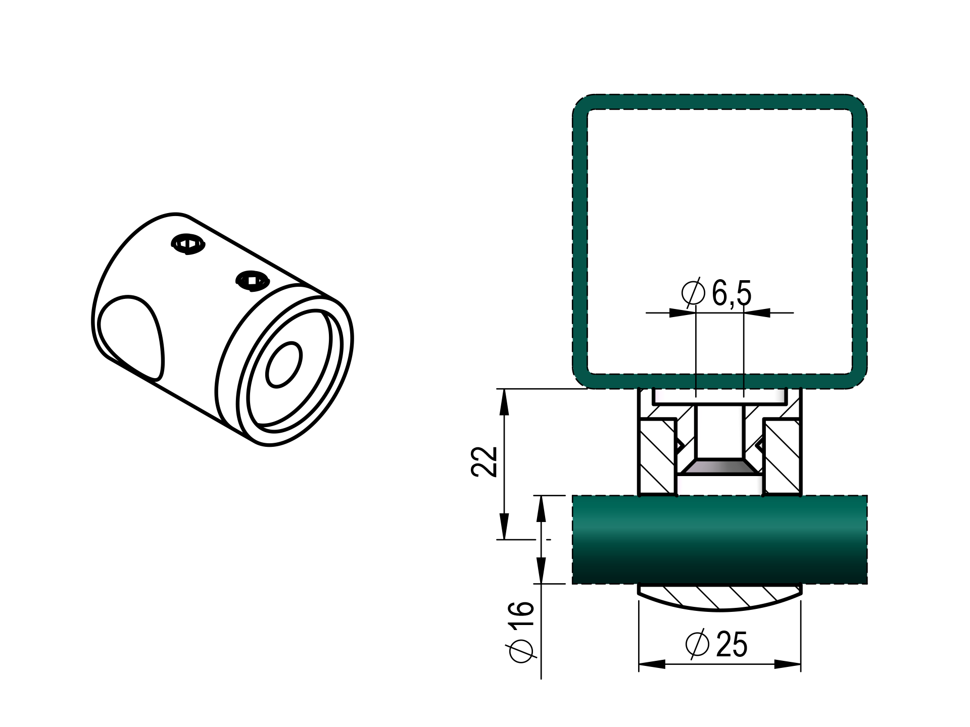 Materiál: Nerez AISI 304, Povrchová úprava: Brus, Výplň: d16, Stĺpik: flat, Phi: flat