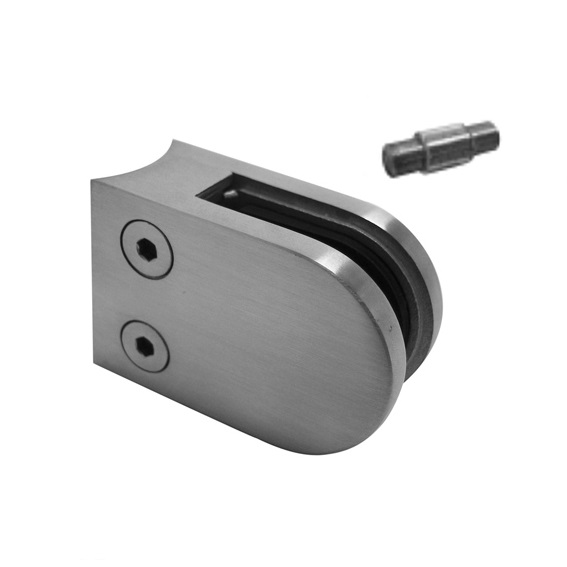 Držiak sklenenej (plechovej, tabuľovej) výplne je konštrukčný prvok používaný na upevnenie a stabilizáciu sklenenej alebo plechovej výplne v rôznych konštrukciách, ako sú zábradlia, balkóny alebo schodiská. Tento držiak zaisťuje pevné a bezpečné prichytenie výplne, čím zvyšuje celkovú stabilitu a bezpečnosť konštrukcie. Sú súčasťou moderných architektonických riešení, ktoré kombinujú funkčnosť, bezpečnosť a estetický vzhľad. Pri výbere držiaka je dôležité zvážiť jeho materiál, dizajn, funkčnosť a kompatibilitu s konkrétnou výplňou a celkovou konštrukciou. Držanie vyplne - poistenie voči vypadnutiu je dosiahnuté pomocou zverného spoja (doporučené použitie pri vrchnom kotveni) alebo zverného spoja + kolika (doporucene pouzitie pre bocne kotvenie). Držiak neobsahuje tesnenie (nutnost dokupit 2ks tesneni podla hrubky skla) a krytky pre skrutky.