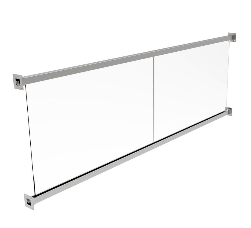 Sklenené zábradlie pre svojpomocnú montáž bez potreby zvárania. Materiály sú dodávané v štandardných dĺžkach, ktoré sú potrebné prispôsobiť reálnej stavebnej situácii. Montáž madla si vyžaduje navŕtanie závitov. Set neobsahuje kotviace závitové tyče a lepidlo.