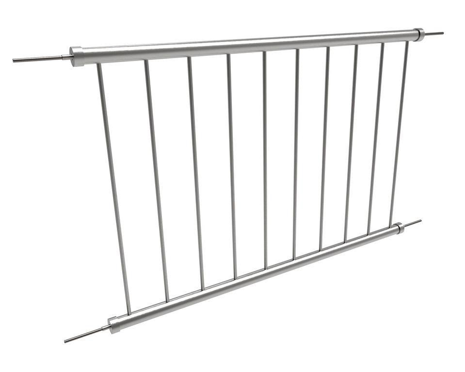 Nerezové zábradlie na francúzske okno pre svojpomocnú montáž bez potreby zvárania. Materiály sú dodávané v štandardných dĺžkach, ktoré je potrebné prispôsobiť reálnej stavebnej situácii. Set neobsahuje kotviace skrutky.