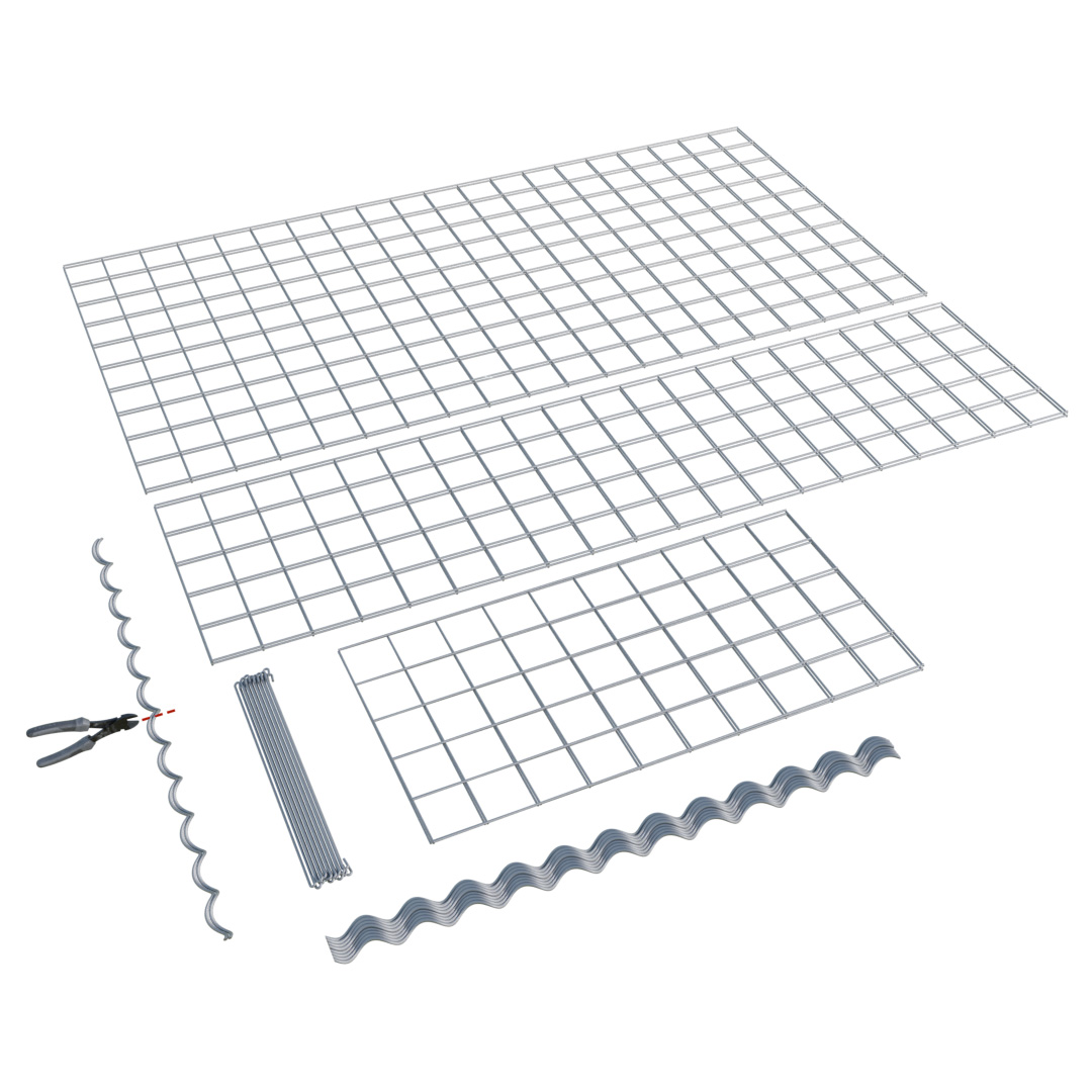 Sada obsahuje siete a príslušenstvo pre gabiónový kôš s rozmermi (š*v*h) 200x100x50cm - priebežný kôš.