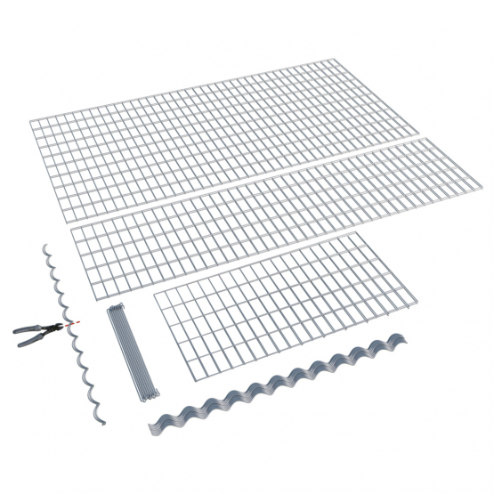 Sada obsahuje siete a príslušenstvo pre gabiónový kôš s rozmermi (š*v*h) 200x100x50cm - priebežný kôš.