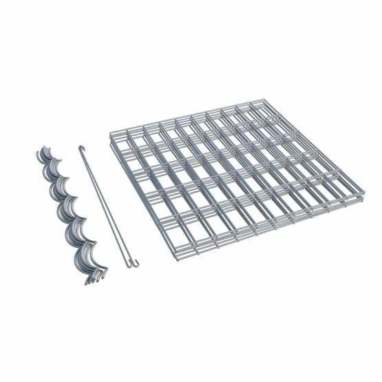 Sada obsahuje siete a príslušenstvo pre gabiónový kôš s rozmermi (š*v*h) 50x50x50cm - priebežný kôš.