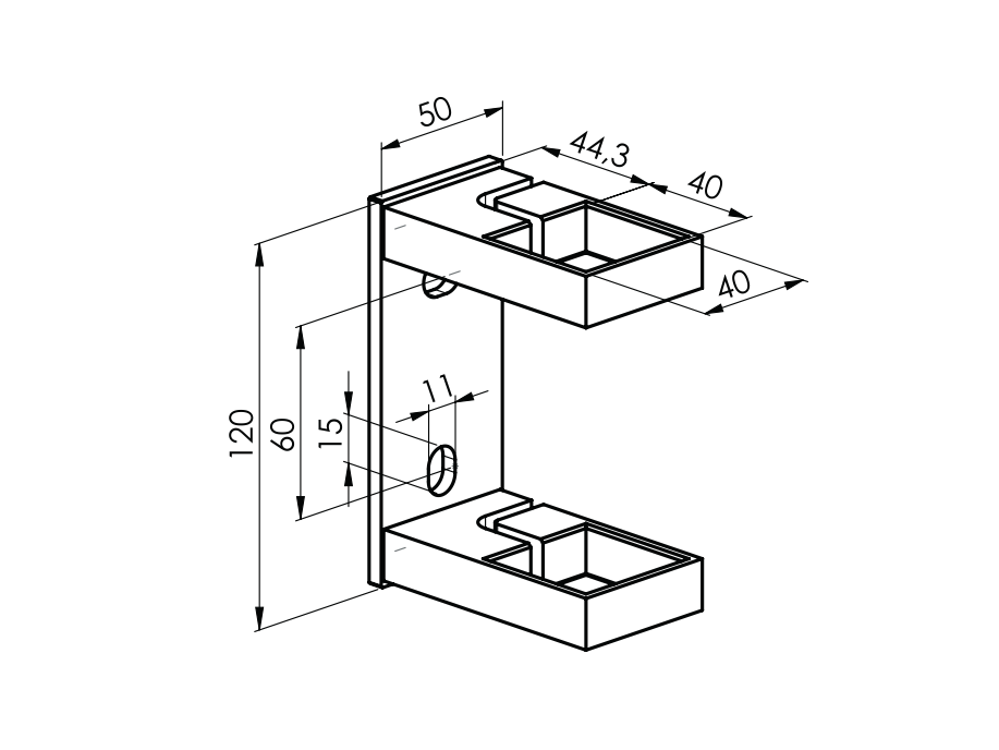 Bočné obdĺžníkové kotvenie stĺpika je konštrukčný prvok používaný na pevné prichytenie stĺpika. Tento typ kotvenia sa často využíva v architektonických a stavebných projektoch na zaistenie stability a bezpečnosti zábradlia. Využíva sa v rôznych aplikáciách, ako sú zábradlia na schodiskách, balkónoch, terasách alebo iných súkromných priestoroch. Kotvenie je navrhnuté tak, aby bolo nenápadné a estetické, čím prispieva k celkovému vzhľadu konštrukcie. Obsahuje 2 otvory, ktoré slúžia na ukotvenie.