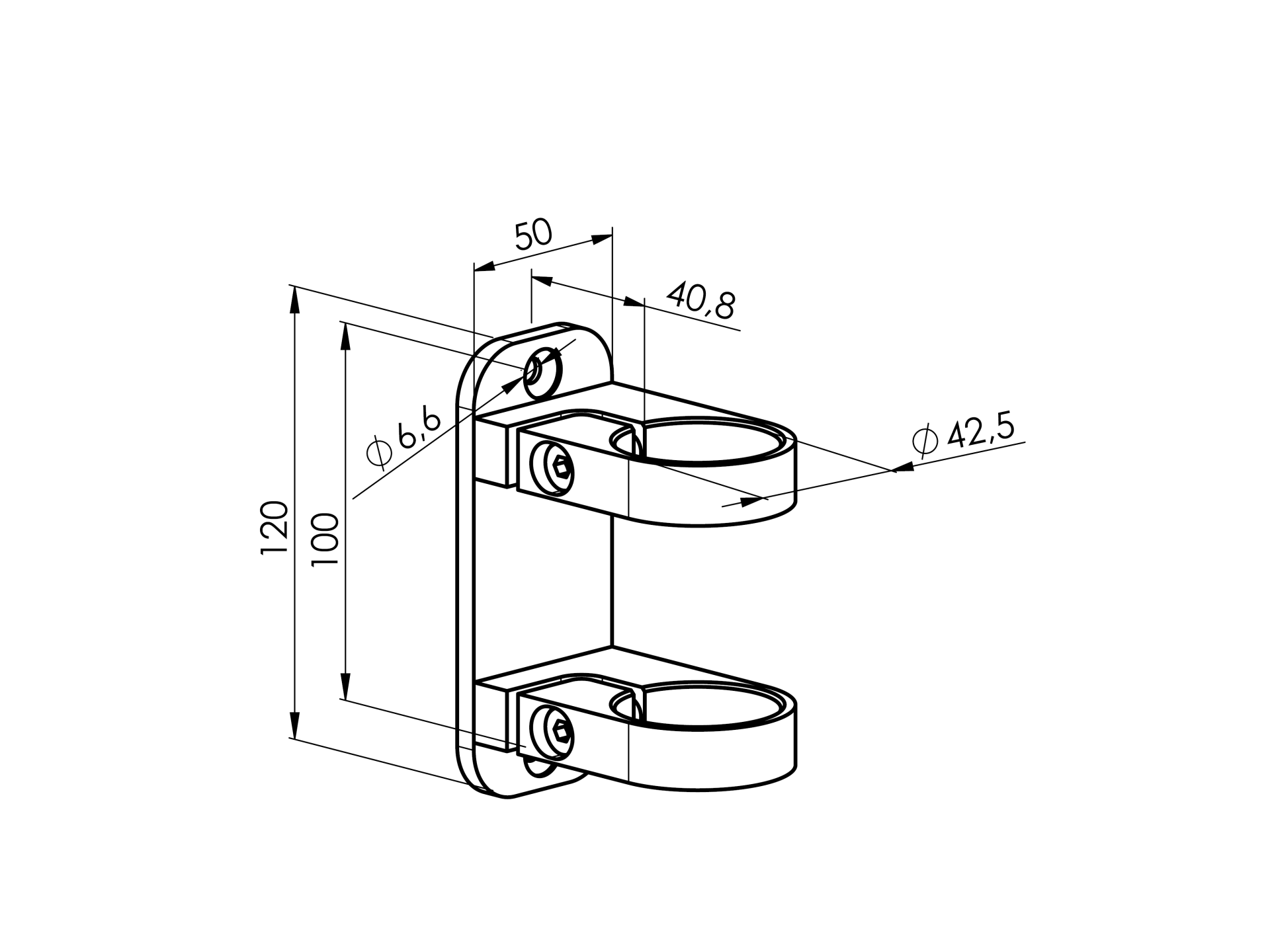 Bočné obdĺžníkové kotvenie stĺpika je konštrukčný prvok používaný na pevné prichytenie stĺpika. Tento typ kotvenia sa často využíva v architektonických a stavebných projektoch na zaistenie stability a bezpečnosti zábradlia. Využíva sa v rôznych aplikáciách, ako sú zábradlia na schodiskách, balkónoch, terasách alebo iných súkromných priestoroch. Kotvenie je navrhnuté tak, aby bolo nenápadné a estetické, čím prispieva k celkovému vzhľadu konštrukcie. Obsahuje 2 otvory, ktoré slúžia na ukotvenie.