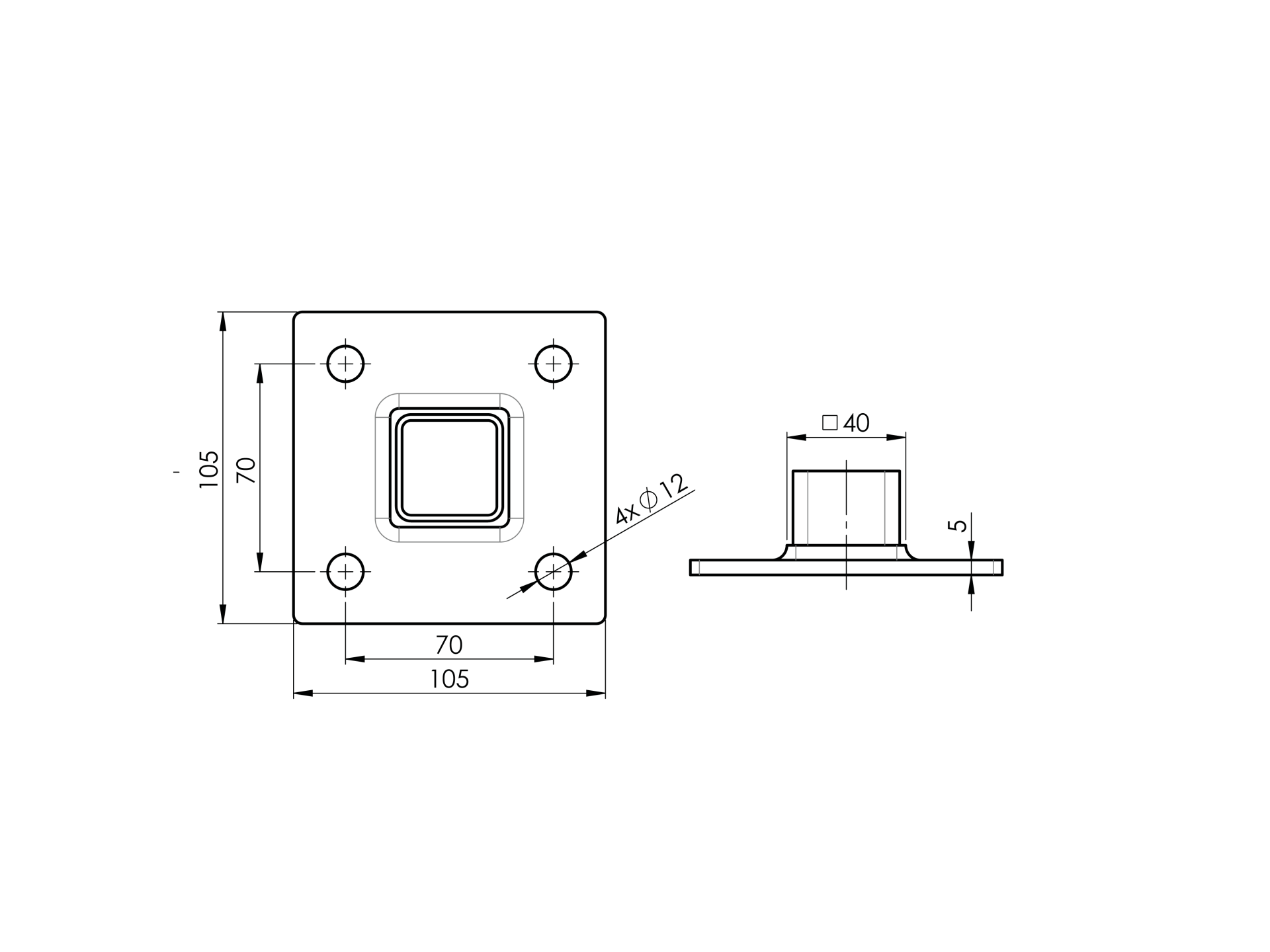 Príruba pre vrchné kotvenie stĺpikov zábradlia poskytuje pevnú podporu a stabilizáciu stĺpika a zabezpečuje jeho bezpečné uchytenie na mieste. Pre ukotvenie sa na prírube nachádzajú 4 otvory, ktoré spolu s kotviacím materiálom zabezpečujú prichytenie k povrchu. Pre lepší dizajn je možné obohatiť túto prírubu o kryciu rozetu, ktorá spolu so stlpíkom vytvorí dokonalý a jednotný vzhľad.