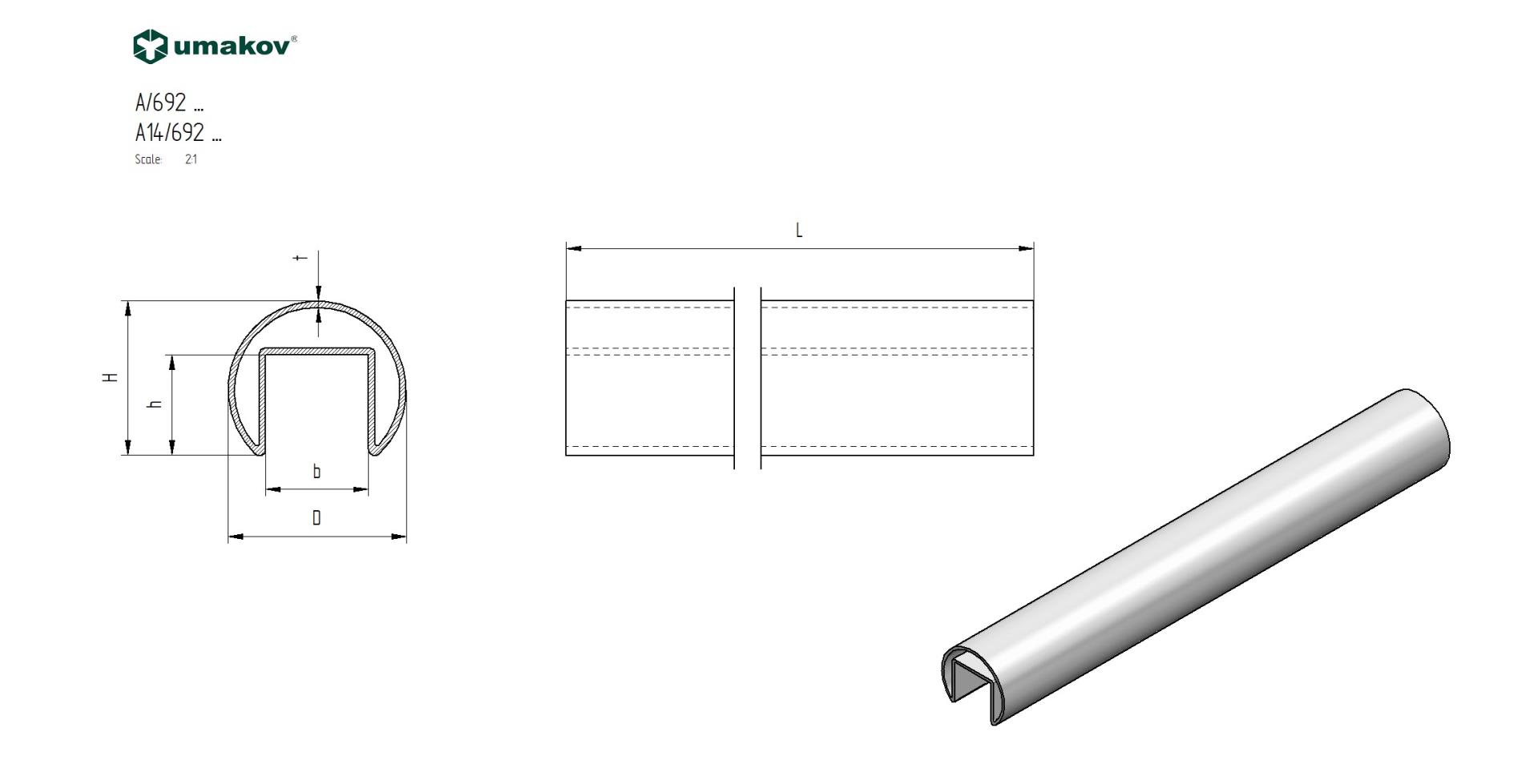 Materiál: Nerez AISI 316, Povrchová úprava: Brus, L: 5000, Madlo: D48,3x1,5, Kotvenie: Na sklo, LED: Nie, b: 27, D: 48,3, H: 42,6, h: 30, t: 1,5