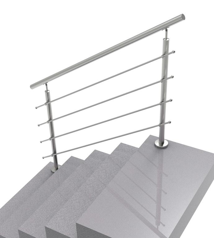 Nerezové zábradlie na schody pre svojpomocnú montáž bez potreby zvárania. Materiály sú dodávané v štandardných dĺžkach, ktoré sú potrebné prispôsobiť reálnej stavebnej situácii. Montáž madla si vyžaduje navŕtanie závitov. Set neobsahuje kotviace závitové tyče a lepidlo.
