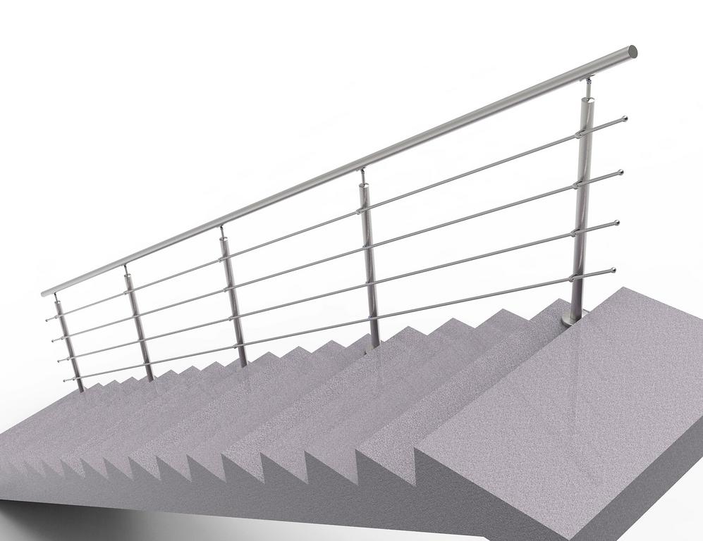 Nerezové zábradlie na schody pre svojpomocnú montáž bez potreby zvárania. Materiály sú dodávané v štandardných dĺžkach, ktoré sú potrebné prispôsobiť reálnej stavebnej situácii. Montáž madla si vyžaduje navŕtanie závitov. Set neobsahuje kotviace závitové tyče a lepidlo.