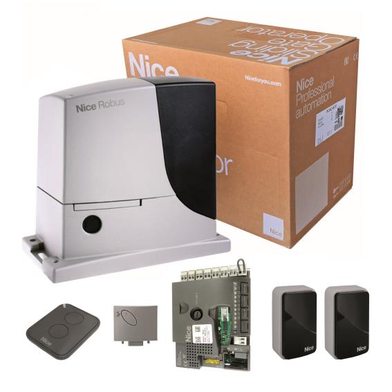 Značka: Nice, Max. dĺžka krídla: 12m, Modul oz. hrebeňa: mod 4, Hmotnosť krídla (odporúčaná): 500kg, Frekvencia (MHz): 433, Typ kódu: Rolling, Obsah zostavy: RB1000-1x, RBA3R10-1x, OXI-1x, ON2E-1x, EPMB-1pár, Spomalenie motora: Spomaľuje pred koncovými polohami, Napájanie motora: DC 24V, Výkon: 450W, Sila: 900N, Rýchlosť: 0,28 m/s, Napájanie: AC 230V, Riadiaca jednotka: RBA3R10, Master/Slave: Áno, Stupeň ochrany: IP44