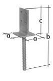 Rozmery: dĺžka pätky - 71mm, celková výška - 338mm, výška pätky - 130mm, priemer závitu - 16mm, hĺbka - 70 mm, hrúbka plechu - 8mm, povrchová úprava - pozinkovaná oceľ.