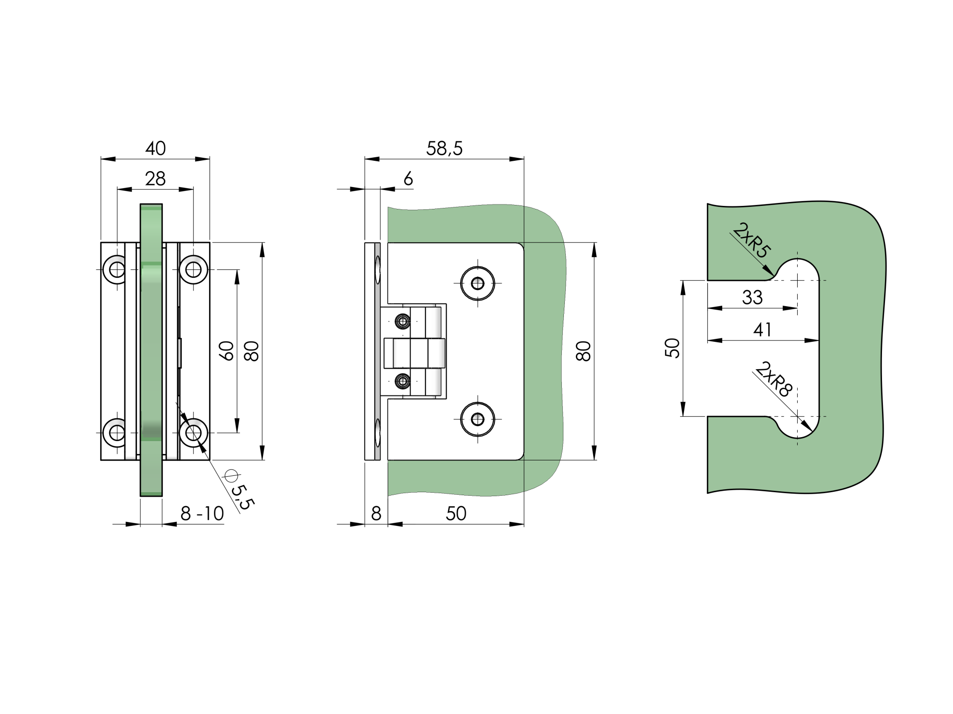 Materiál: Mosadz, Povrchová úprava: Brus, Glass t: 8-10, Výplň: Sklo, Gmax(kg)/2pcs: 45, Kotvenie: Na stenu, Funkcia nulového bodu: Áno, Funkcia samozatvárania: +-25°, Funkcia stop: +-90°/0°, Otvor v skle: Áno