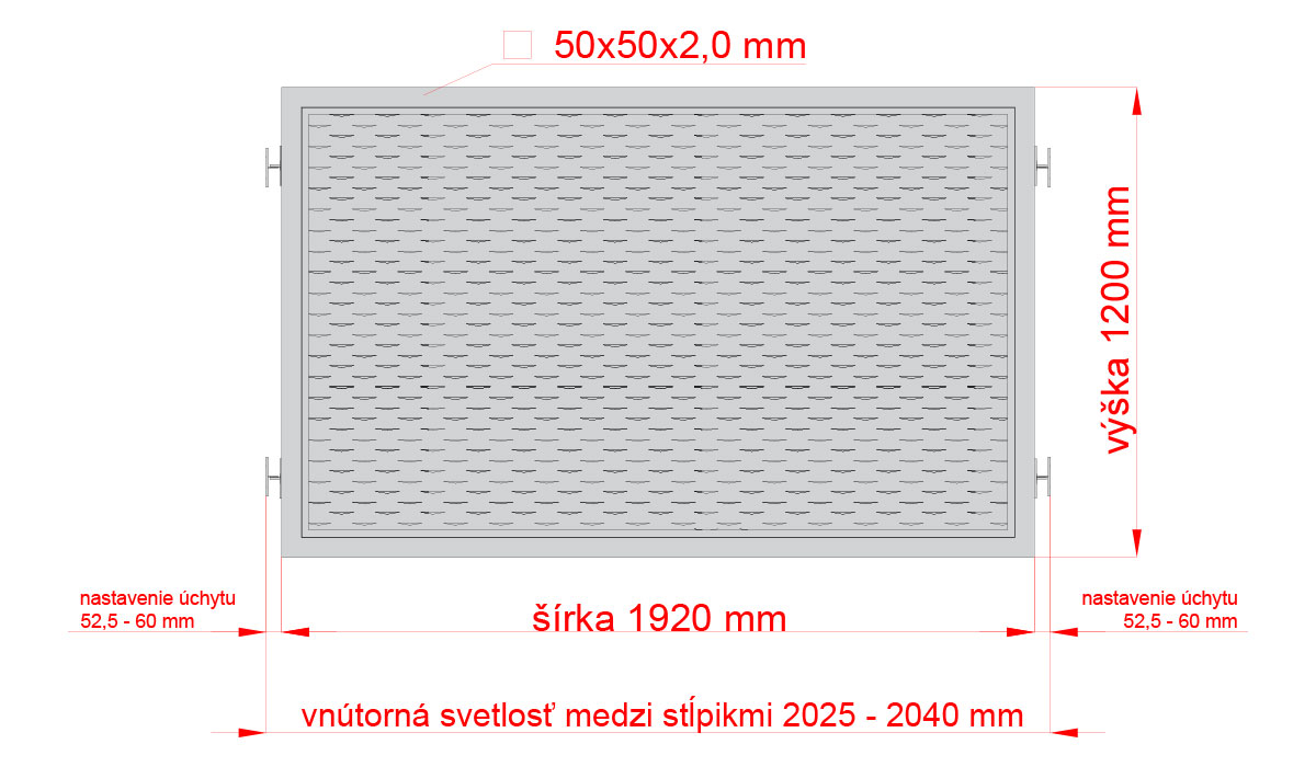 Vnútorná svetlosť medzi stĺpikmi: 2025 - 2040mm