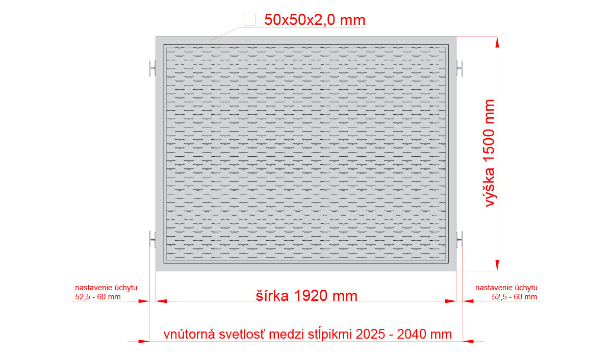 Vnútorná svetlosť medzi stĺpikmi: 2025 - 2040mm