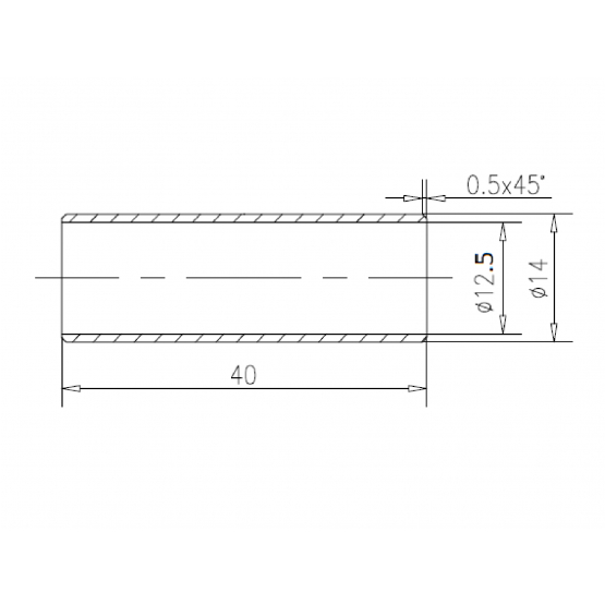 Materiál: Nerez AISI 304, Povrchová úprava: Brus, Výplň: d12, Phi: 12, B: 1x45°, D: 14