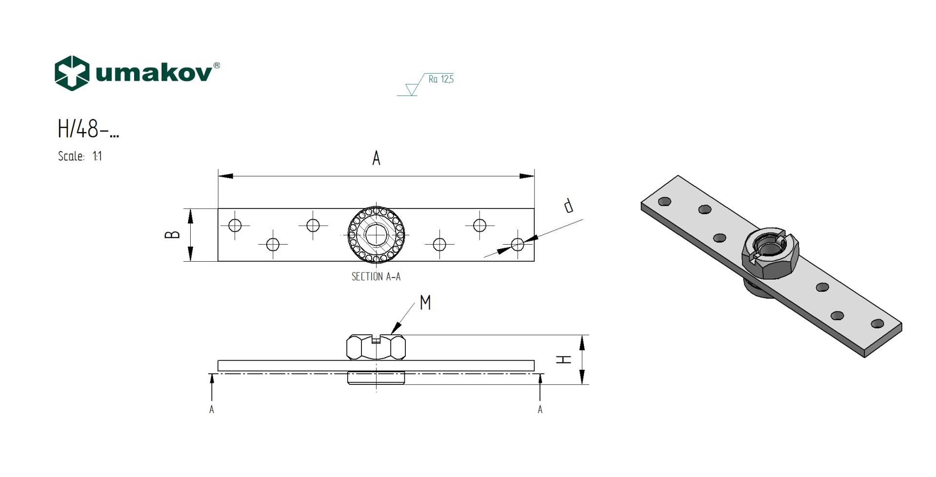 Materiál: Oceľ, Povrchová úprava: Zinok, Značka: Umakov, Phi: 8, a: 100, b: 20, d: 10, H: 20