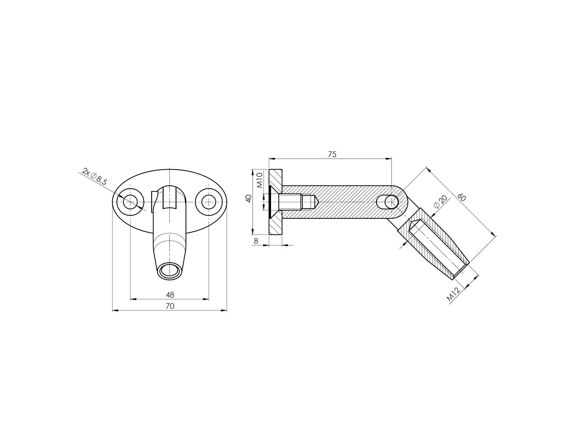 Vrchné kotvenie pre prístrešok je konštrukčný prvok, ktorý ktorý slúži na ukotvenie prístrešku. Kotvenie do steny je dosiahnuté pomocou 2 otvorov a kotviacích prvkov. Kotvenie je nastaviteľné, čo umožňuje nastavenie sklonu výplne.