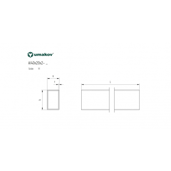 Materiál: Nerez AISI 304, Povrchová úprava: Brus, Tvar prierezu: JPL profil, L: 6000, t: 2, a: 20, b: 40