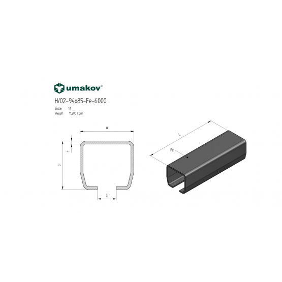 Materiál: Oceľ, Povrchová úprava: Natural, Značka: Umakov, Rozmerová rada (mm): 94x85, L: 6000, a: 94, b: 85, s: 33, t: 5